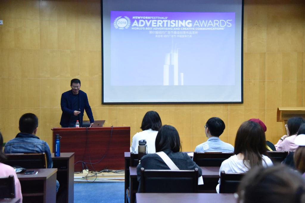 吴金君先生担任纽约广告节中国首席代表近十余年,在广告创意与执行、作品参赛申报及大赛评审标准方面有着丰富的经验。本次讲座他向同学们展示了第61届纽约广告节的14个获奖单元的最佳广告创意作品,他以幽默丰趣的语言为同学们解析创意思维、执行的细节,向同学们传递着广告创意的感染力。吴金君老师认为,从纽约广告节的评价标准及评审结果来看,我国的广告市场虽然在世界排名第二,但十年来真正入围纽约广告奖的却没有一个,这足以说明我国广告业创意乏力的现状。对于广告学习,吴老师对同学们提出两点期望:第一,期望同学们扩大知识面,提升专业技能;第二,期望同学们注意把自己的所学专业和社会需求相结合起来,注重实际技能的培养。优秀的广告作品离不开伟大的创意,更离不开完美的执行,同学们要把创意和品牌相关性、可执行性相结合,做出优秀的广告作品,为我国广告界增光添彩。