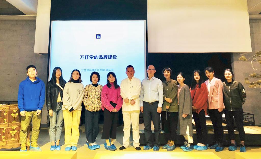 参观完毕后,万仟堂创始人蔡万涯先生以《万仟堂的品牌建设》为主题专门为同学们上了一堂精彩的品牌课程。蔡总用自己的十年创业经验,为同学们解读了万仟堂品牌定位、思想理念、企业愿景及产品设计思考,让同学们不仅对万仟堂这一品牌有了深刻的认识,对整个当下文化艺术产业也有了全面的认识。蔡总强调,艺术产品的同质化其实质是文化内涵的确实,万仟堂坚持用陶土诠释东方美学,在设计上要追寻宋代美学气息,倡导中式文人生活格调,致力于在艺术与生活之间寻找合理的平衡,还原陶艺产品实用形象。蔡总认为产品研发要实现艺术的商业化和商业的艺术化,商业的思考能力决定了文化产业的未来。目前,万仟堂旗下四大产品系列:茶器、花器、香器、艺术品,公司秉持让“四艺生活”复归当代的精神,集研发、销售为一体的品牌运营商业模式,保证了品质与品牌的生命力,通过店铺和网络与用户保持交流,忠实地表达万仟堂的品牌精神。在两个小时的课程分享中,蔡总丰富的品牌运作经验及独特的品牌见解让同学们脑洞打开,开阔了视野。课后同学们提出了一系列相关问题,与蔡总进行了良好互动。