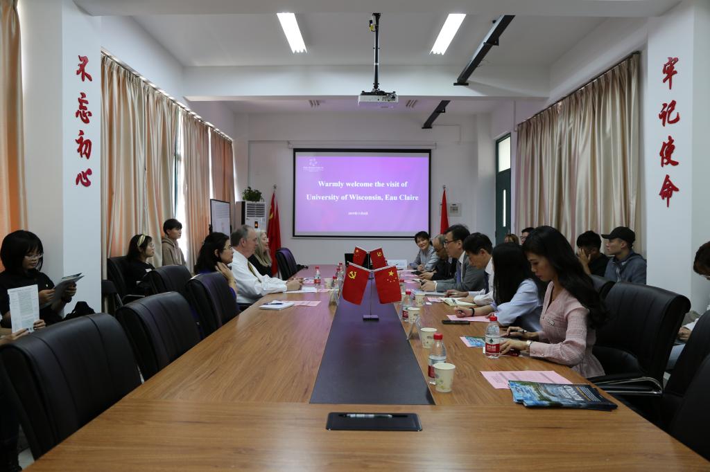 11月4日下午,美国威斯康星大学欧克莱尔分校校长詹姆士•施密特博士、国际教育中心主任科琳•马奇威克女士、国际教育中心中国项目主管杨亦柳女士一行三人来91视频